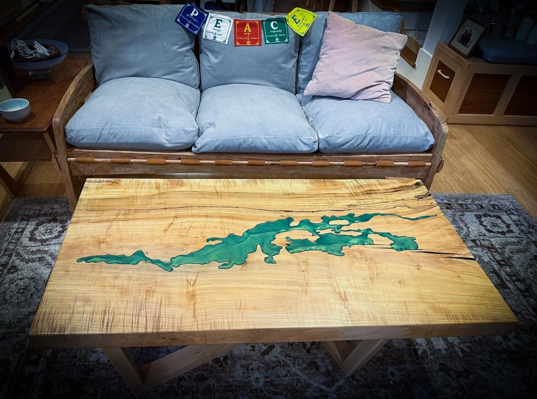 Custom Engraved Maple Coffee Table with Resin River