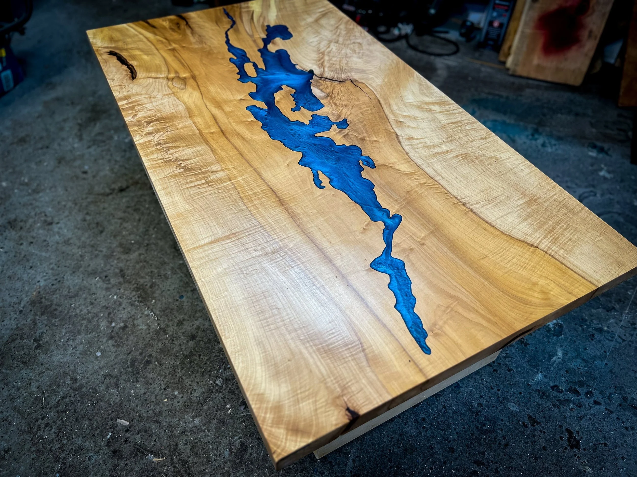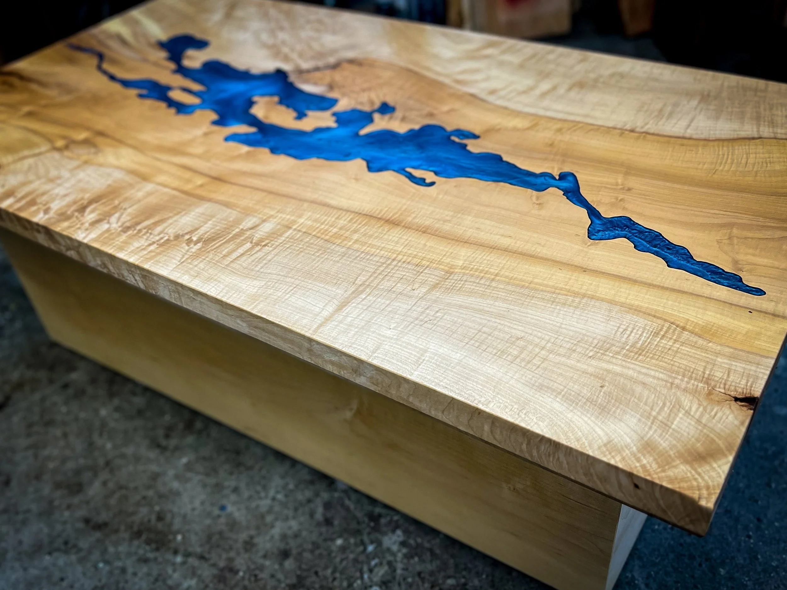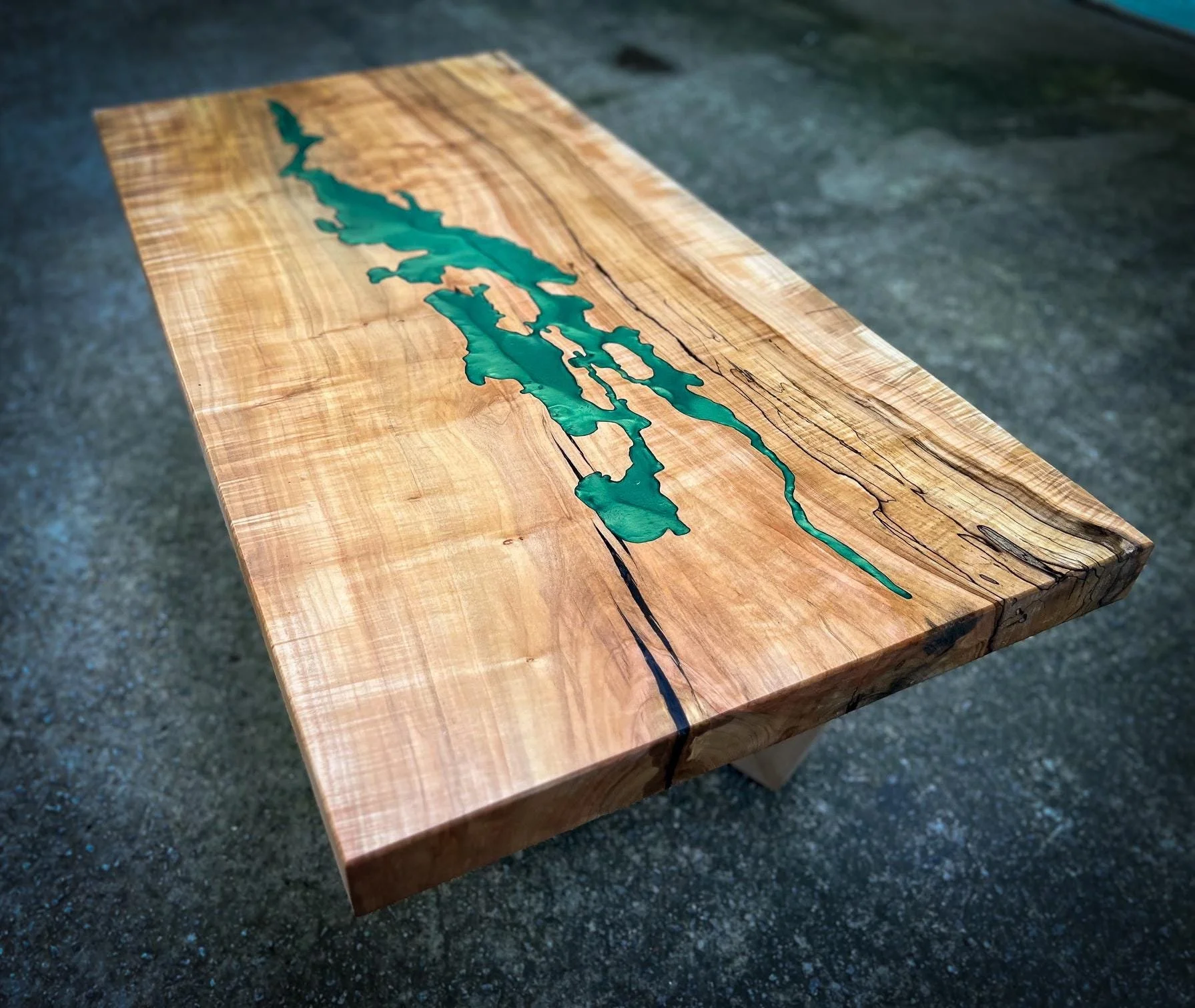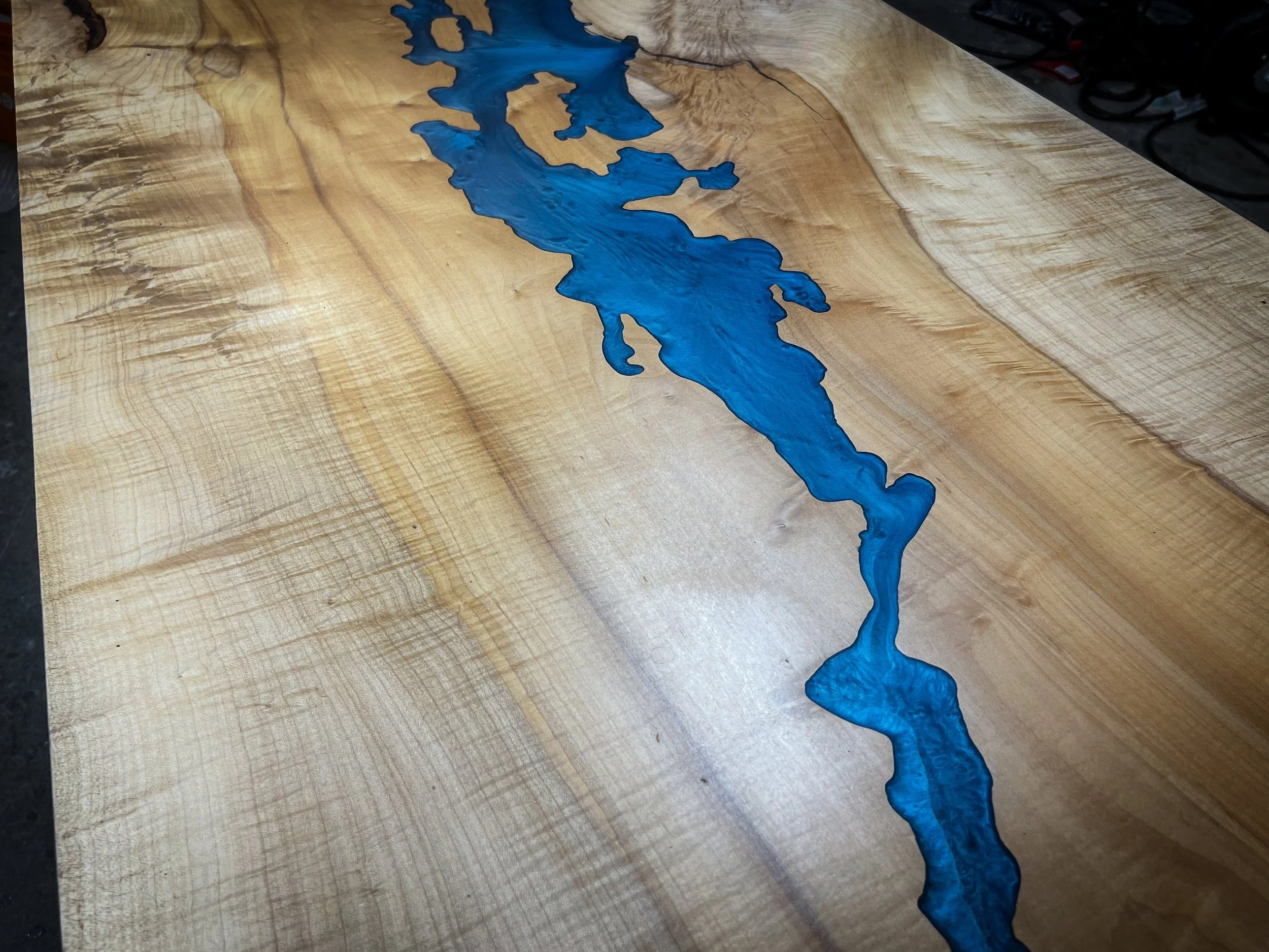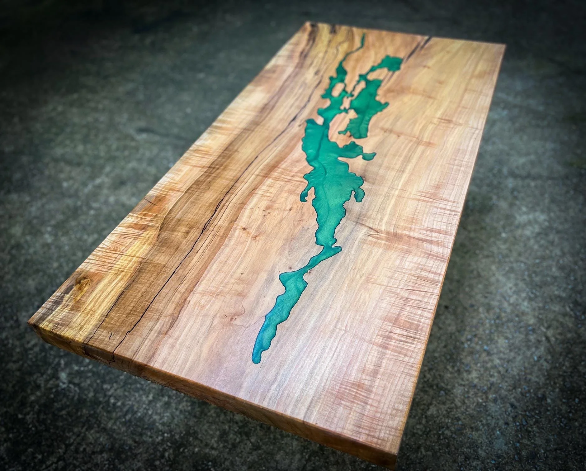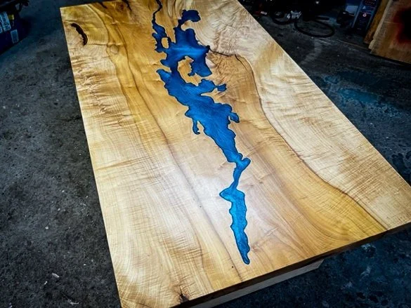 Live-edge maple beauty: Soft curves and rich grain paired with sleek resin for organic-modern appeal
