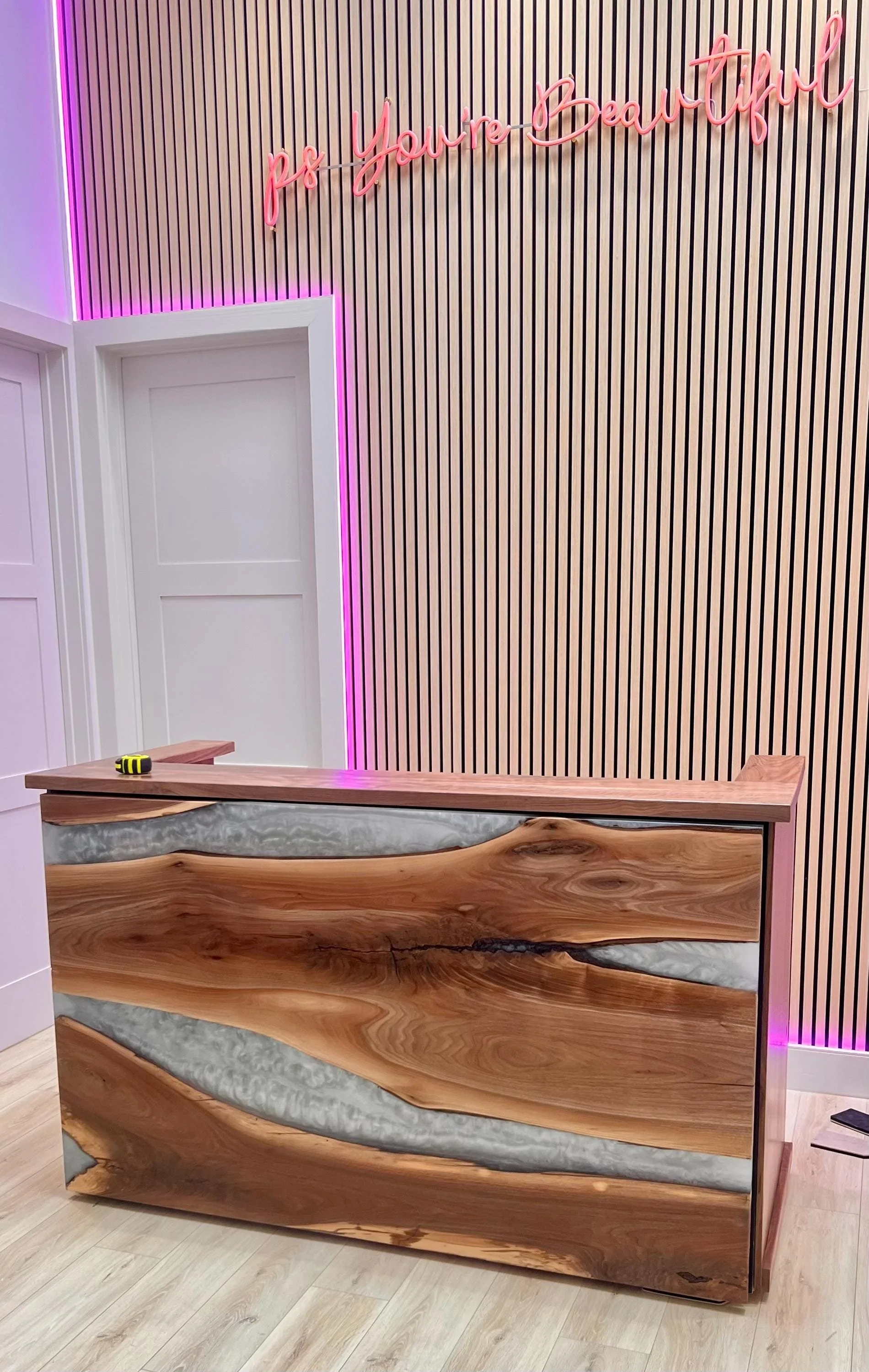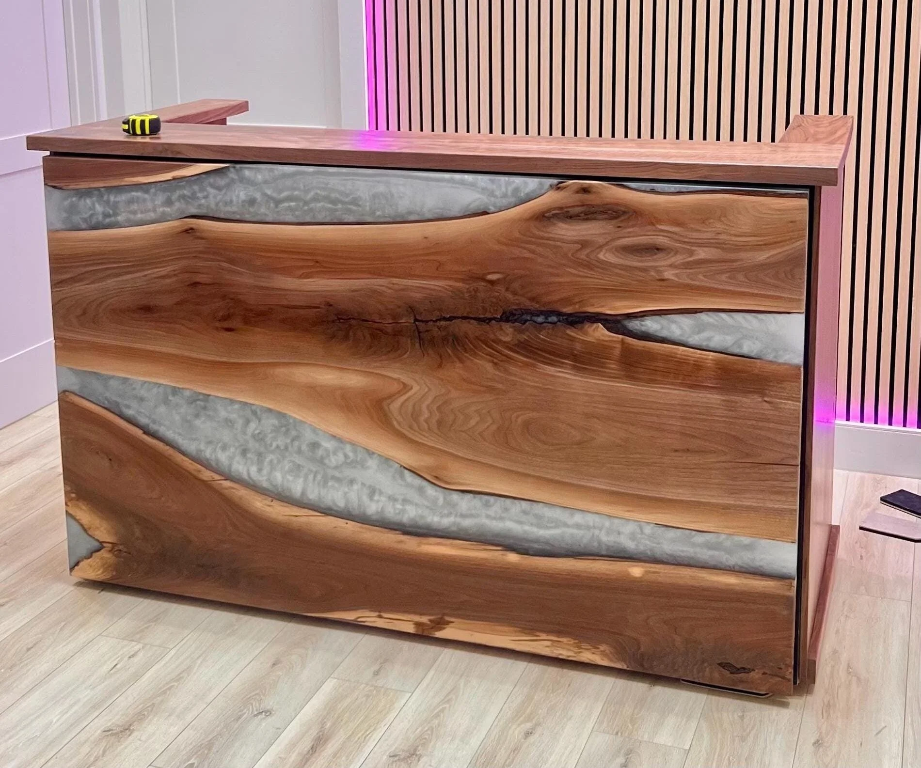 Are you looking to make a true statement piece for your clients when they walk into your establishment? Consider one of our unique, handmade, fully customized reception desks that blend the natural beauty of hardwoods with the stunning artistry of epoxy resin.