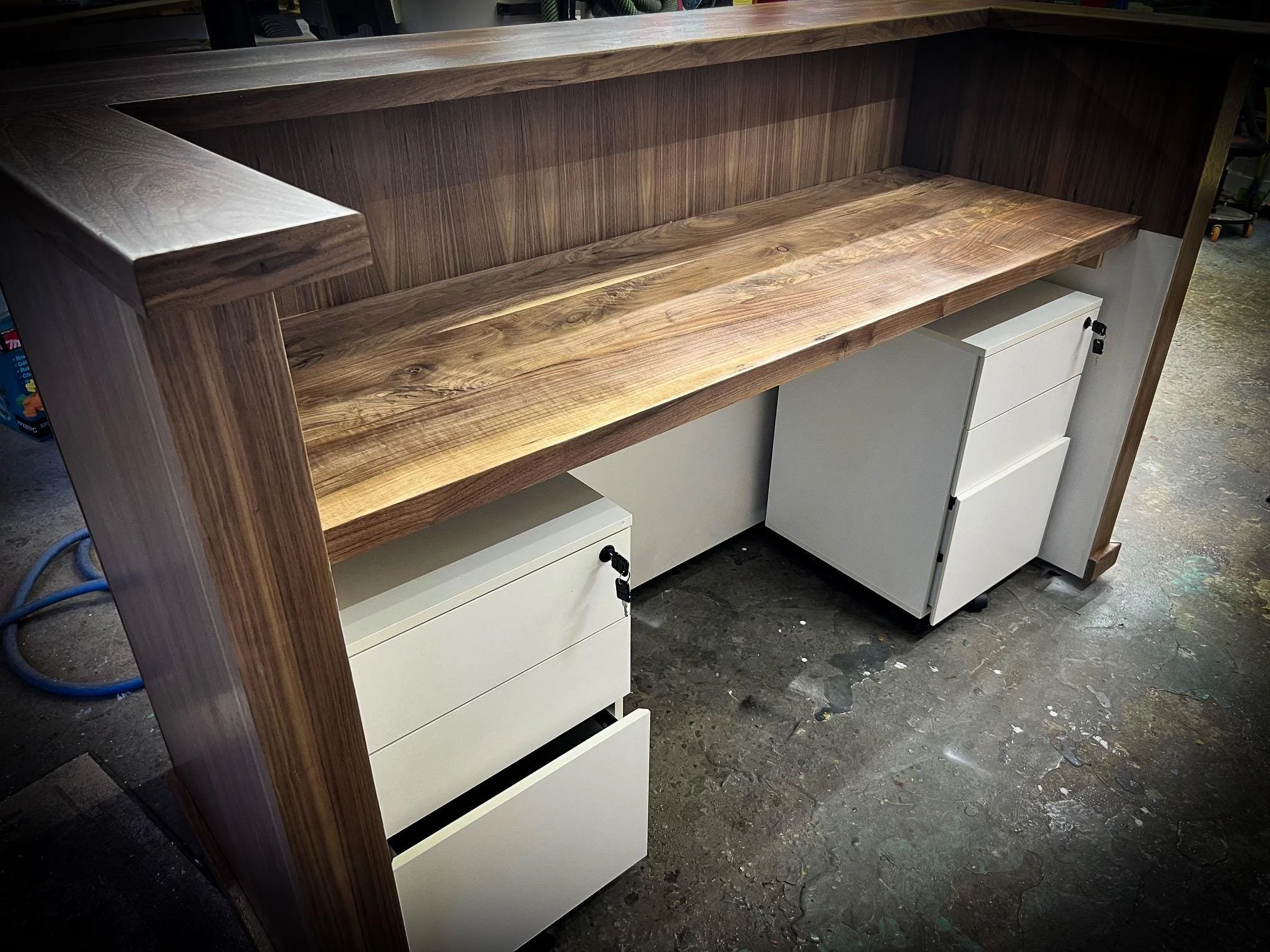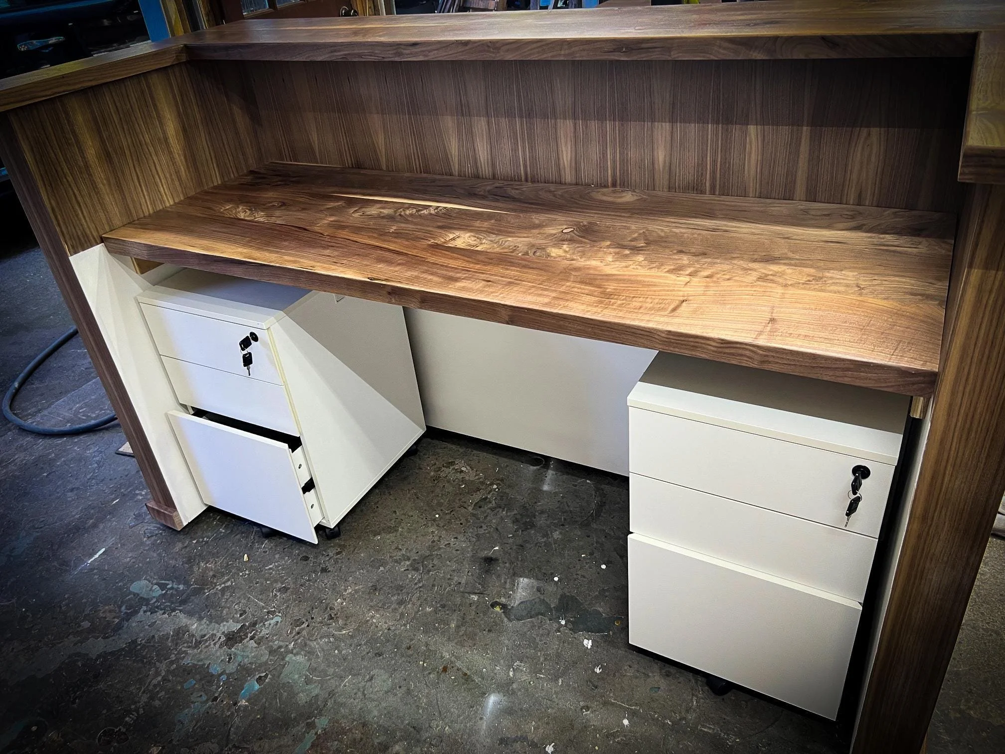 We work closely to design these desks based solely on your needs and requests. Each desk is made from scratch; we provide engineered shop drawings for approval as well as finish samples to ensure you are receiving precisely what you want for your business.