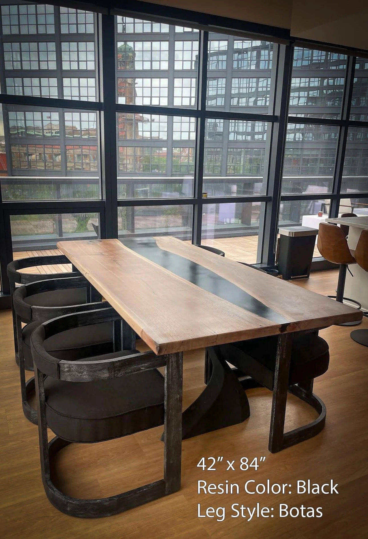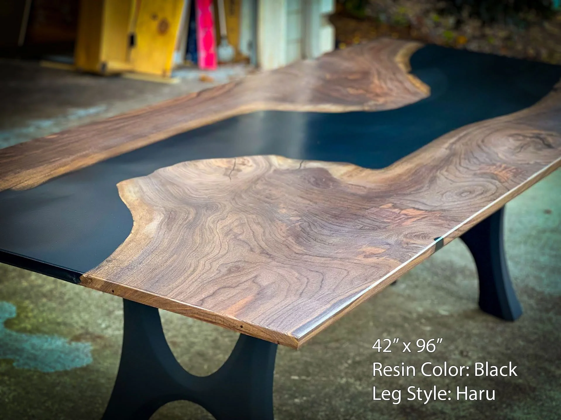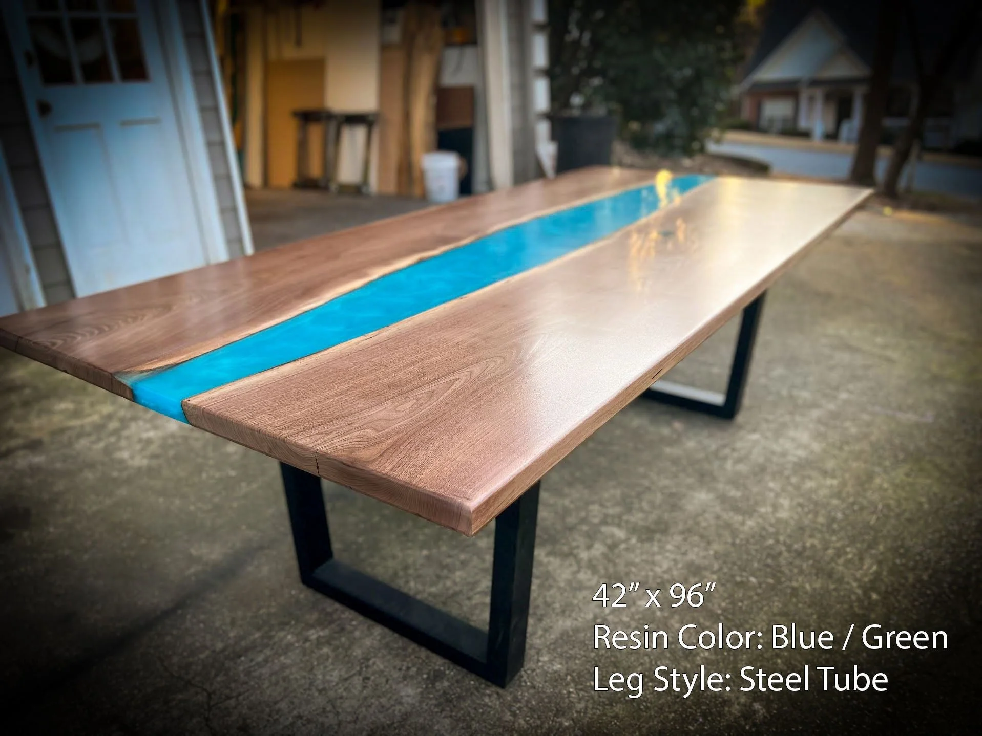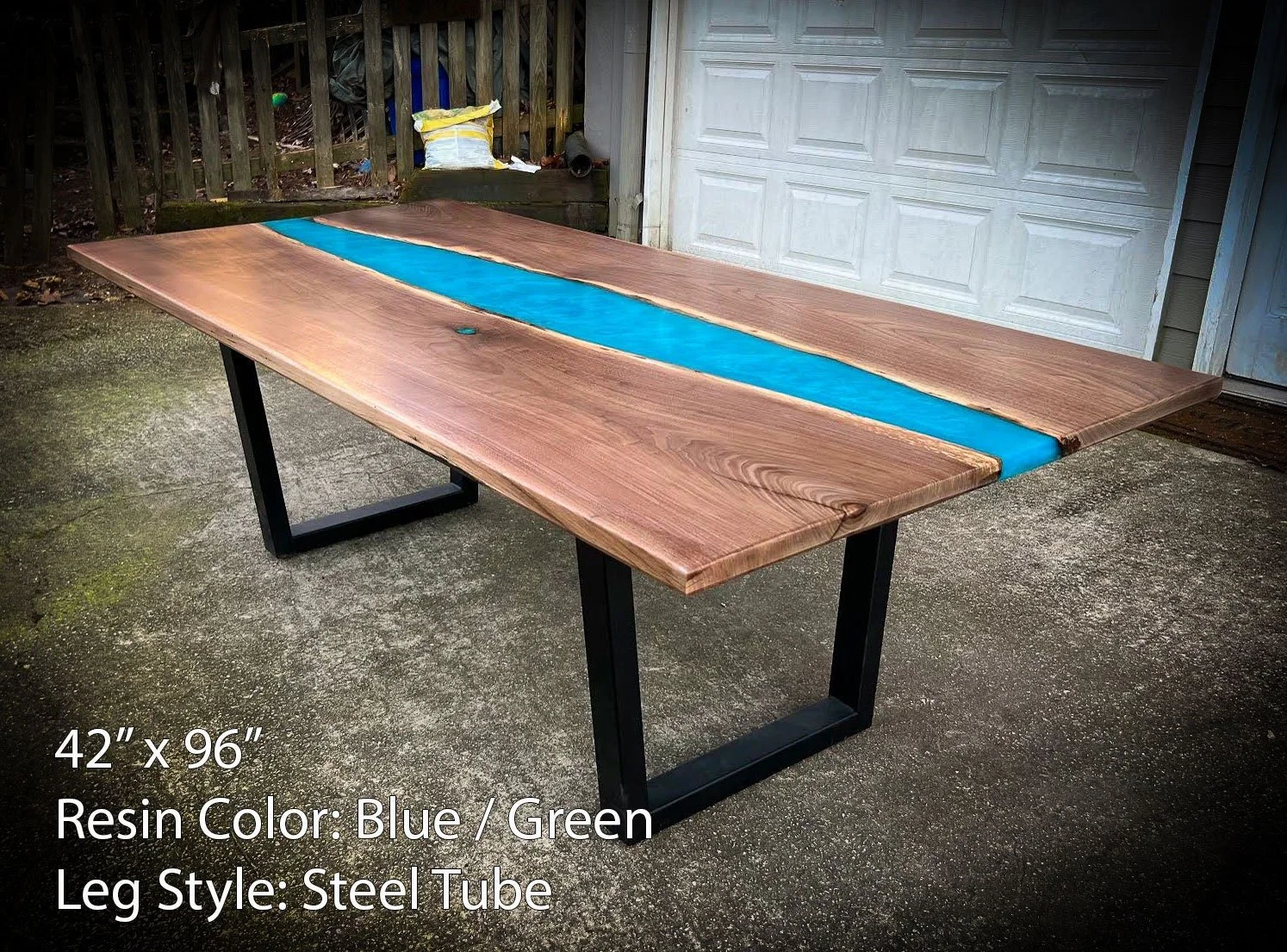 Our walnut epoxy resin river table is a statement piece that will always stay in style. Blending artistry and utility, this piece will be a talking point and conversation starter for decades to come and a gathering point in your home for all gatherings.