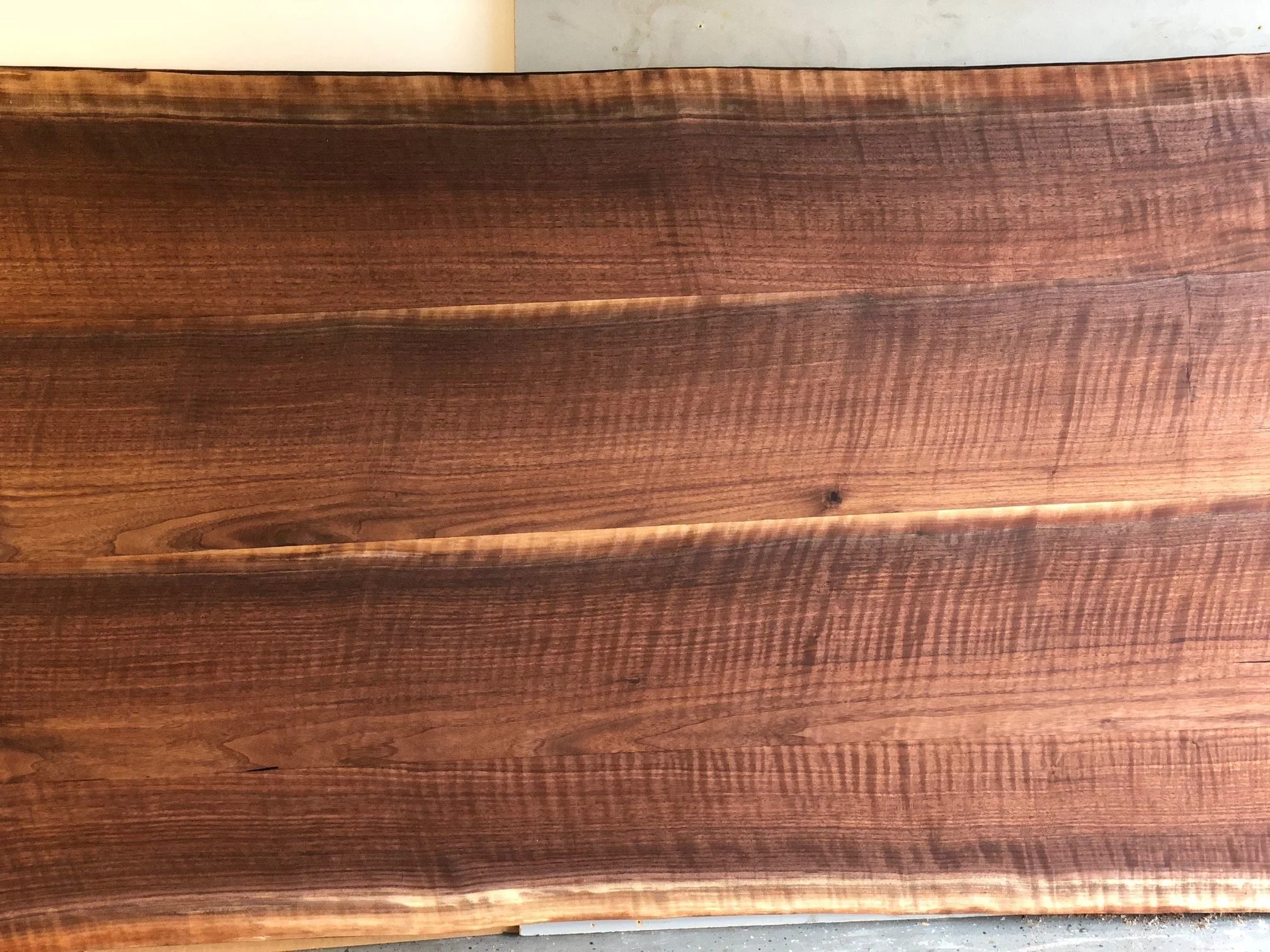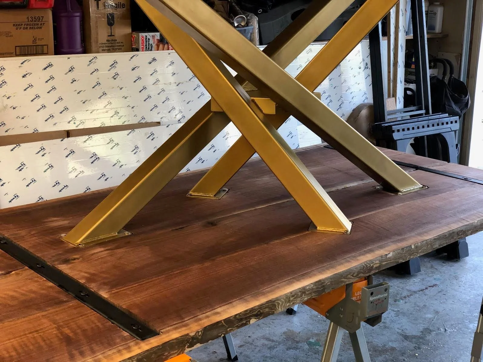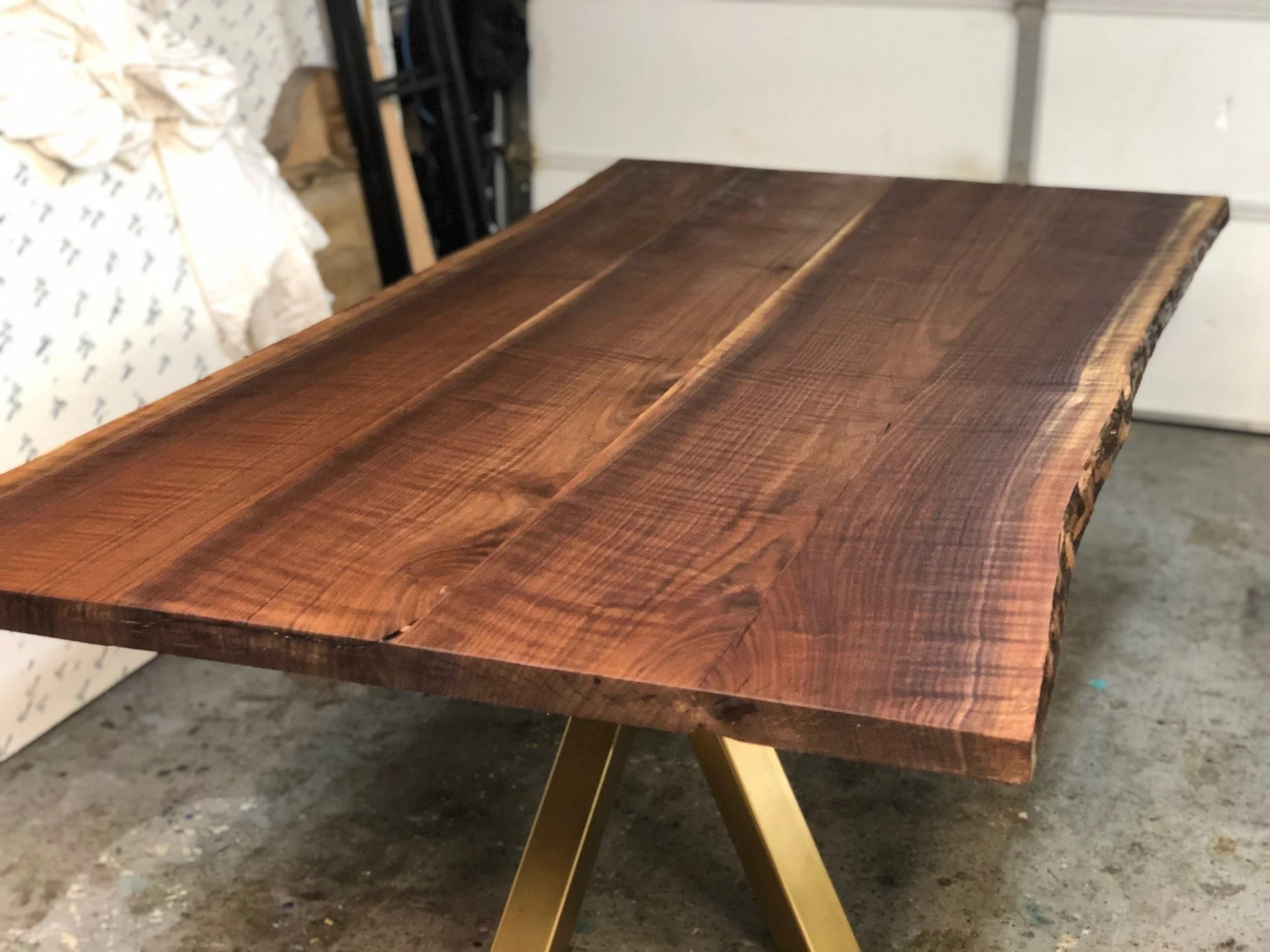Listing dimensions: 44" x 84" x 2" thick Leg Style: Brushed Gold "Spider" Base Finish: Rubio Monocoat "Pure"