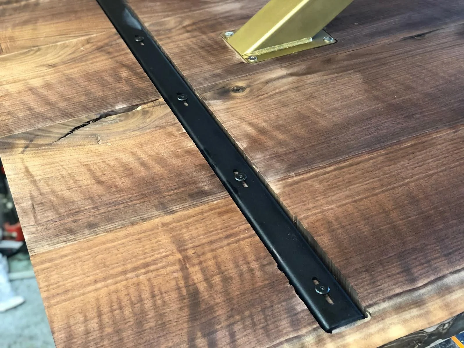 Custom Solid Walnut Table with Brushed Gold Metal Base
