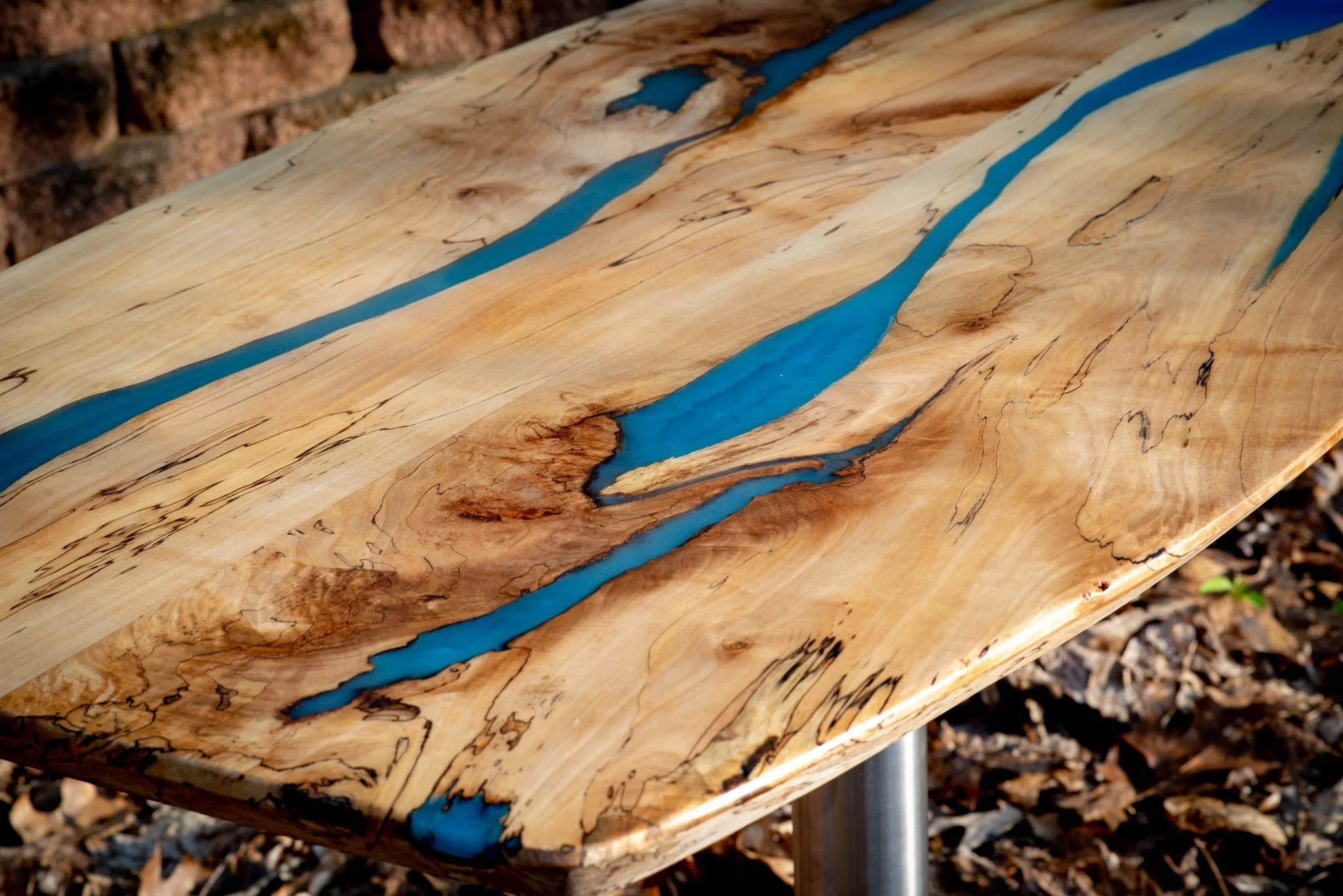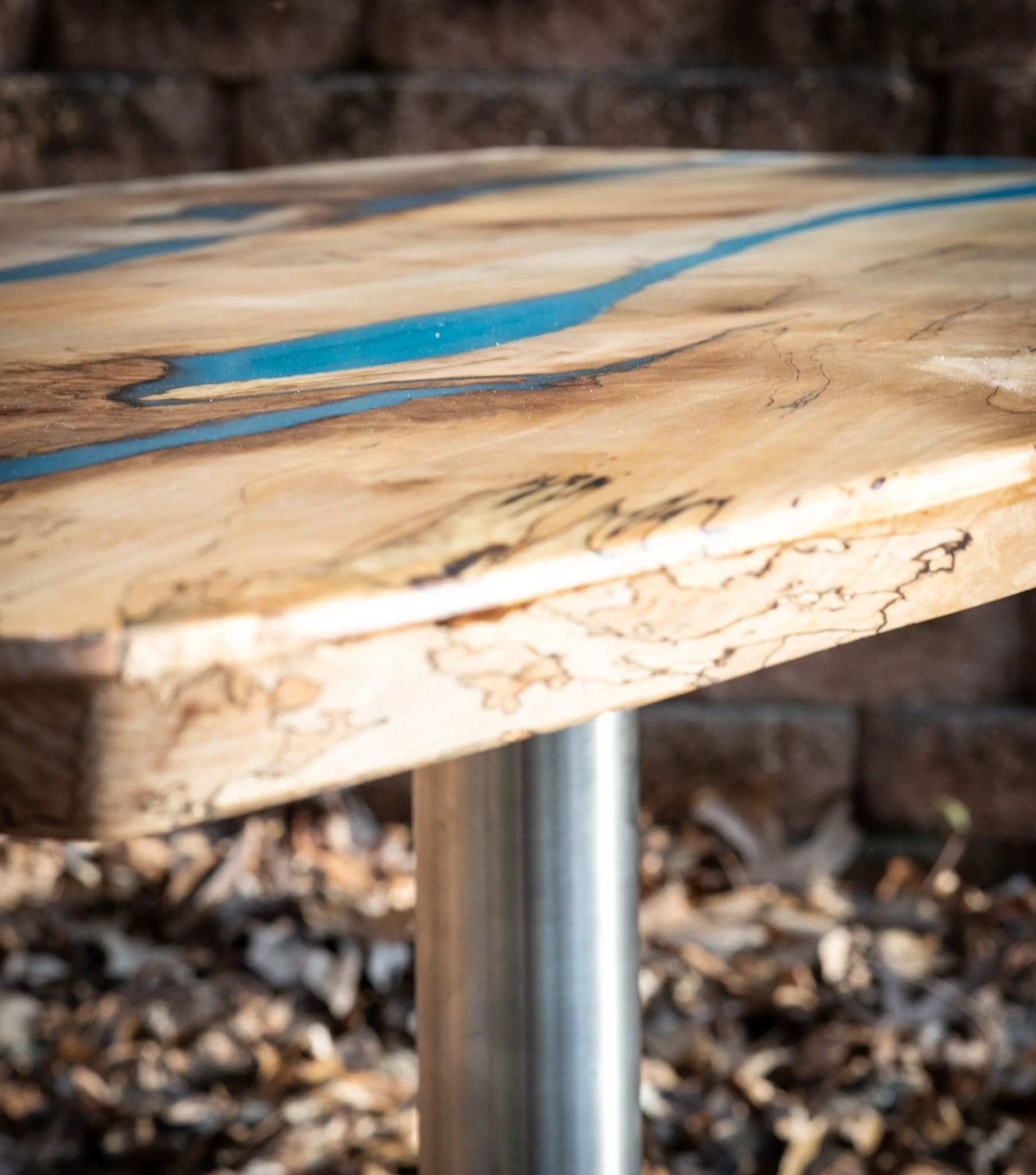 Each river table is handmade to order in the USA. This handsome piece is milled from spalted maple sourced from the Ozarks and crafted in our shop located in the foothills of Kennesaw, Georgia.