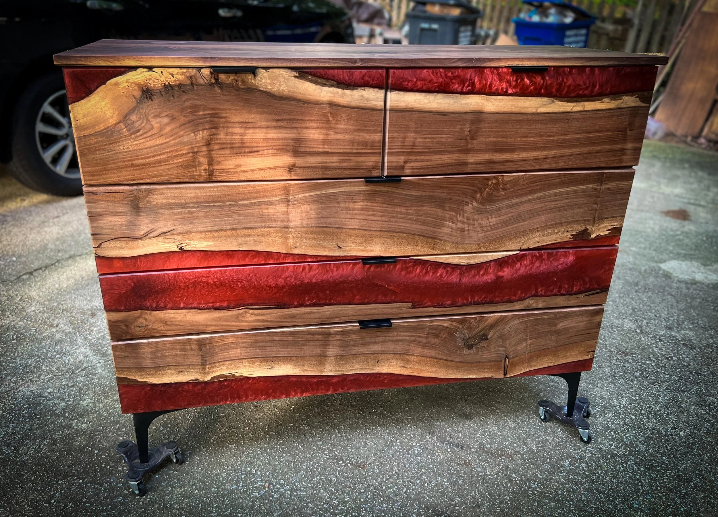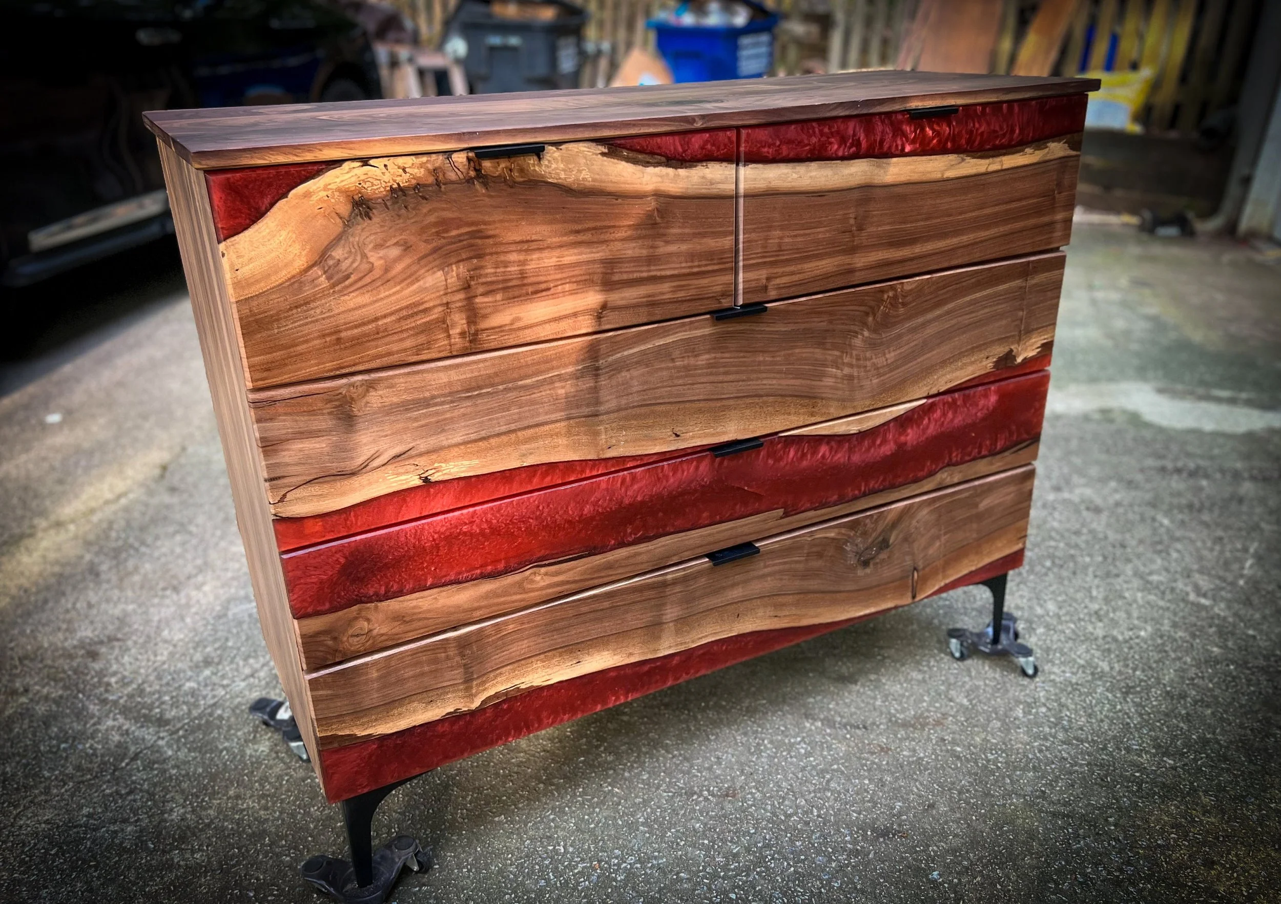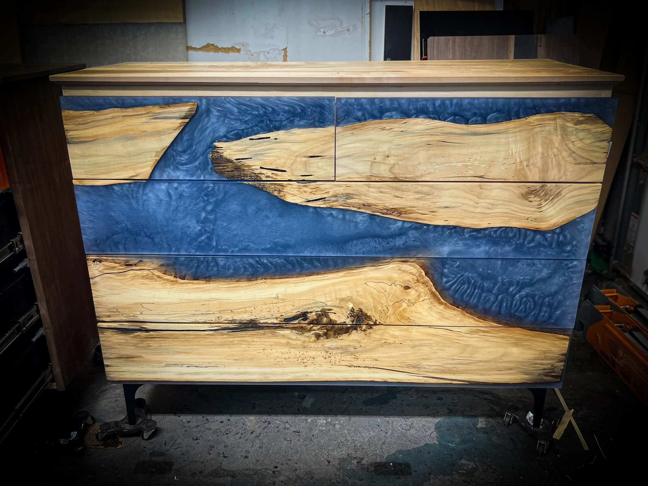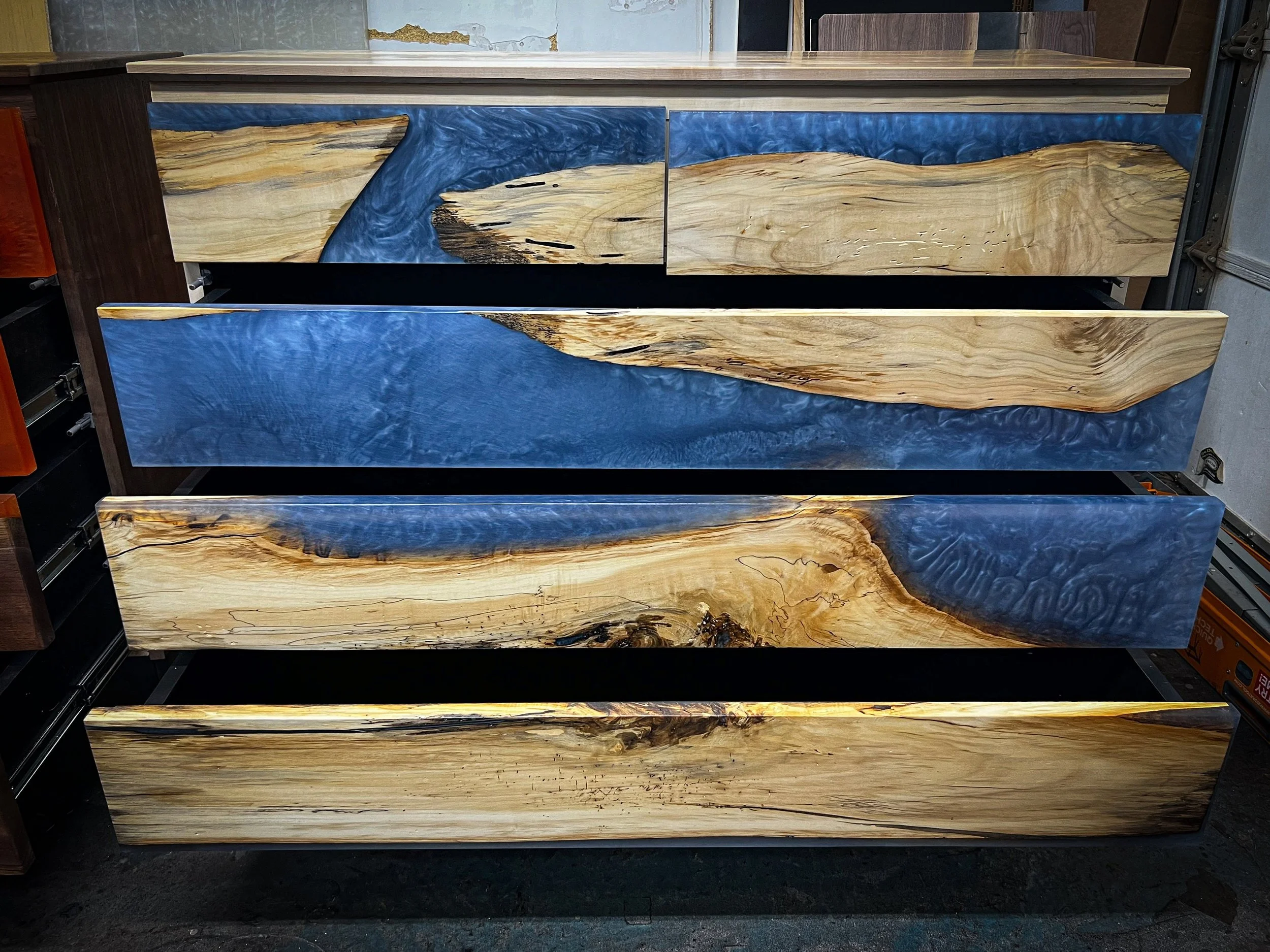 Epoxy Resin River Dresser: Natural Wood Veneer Chest of Drawers