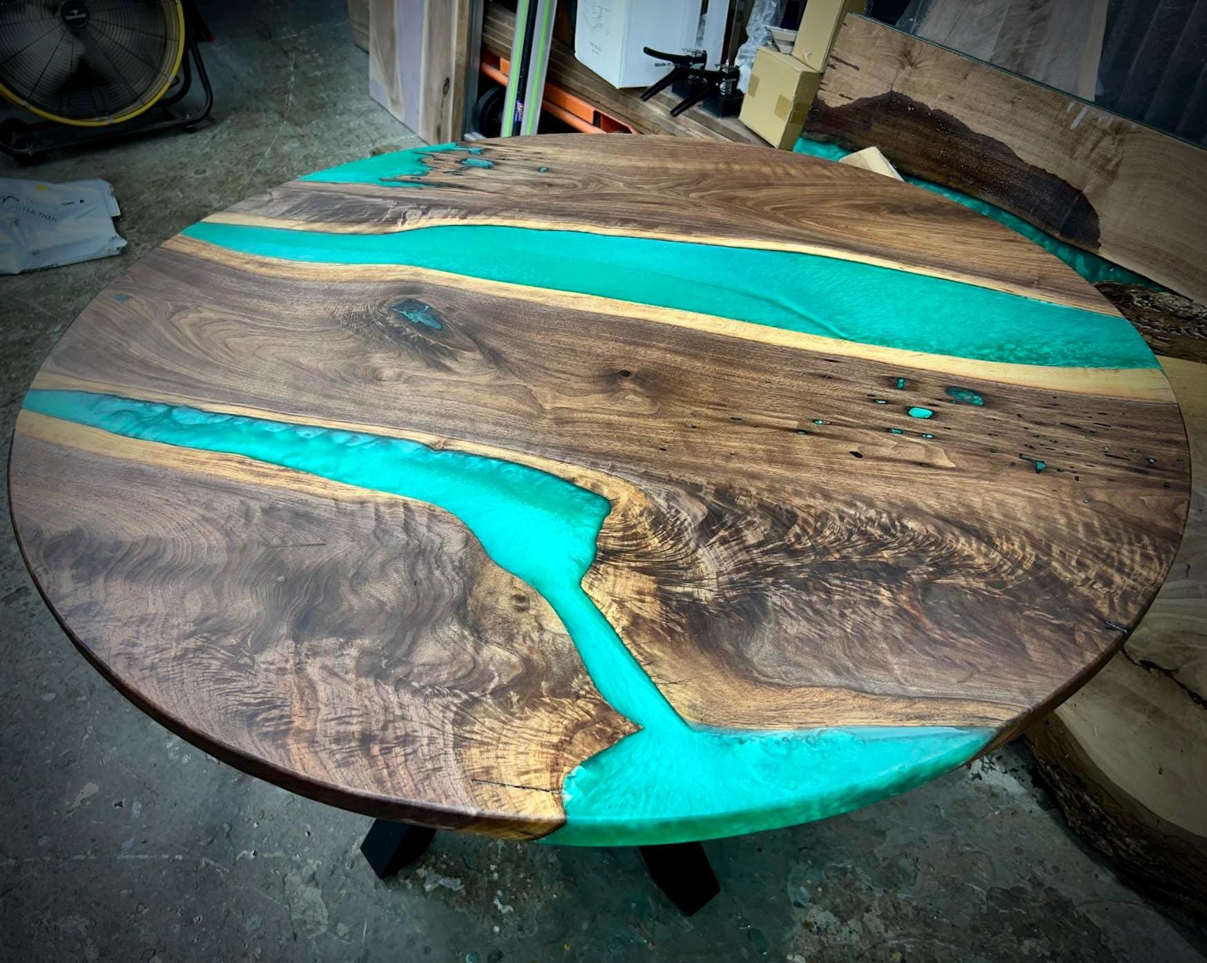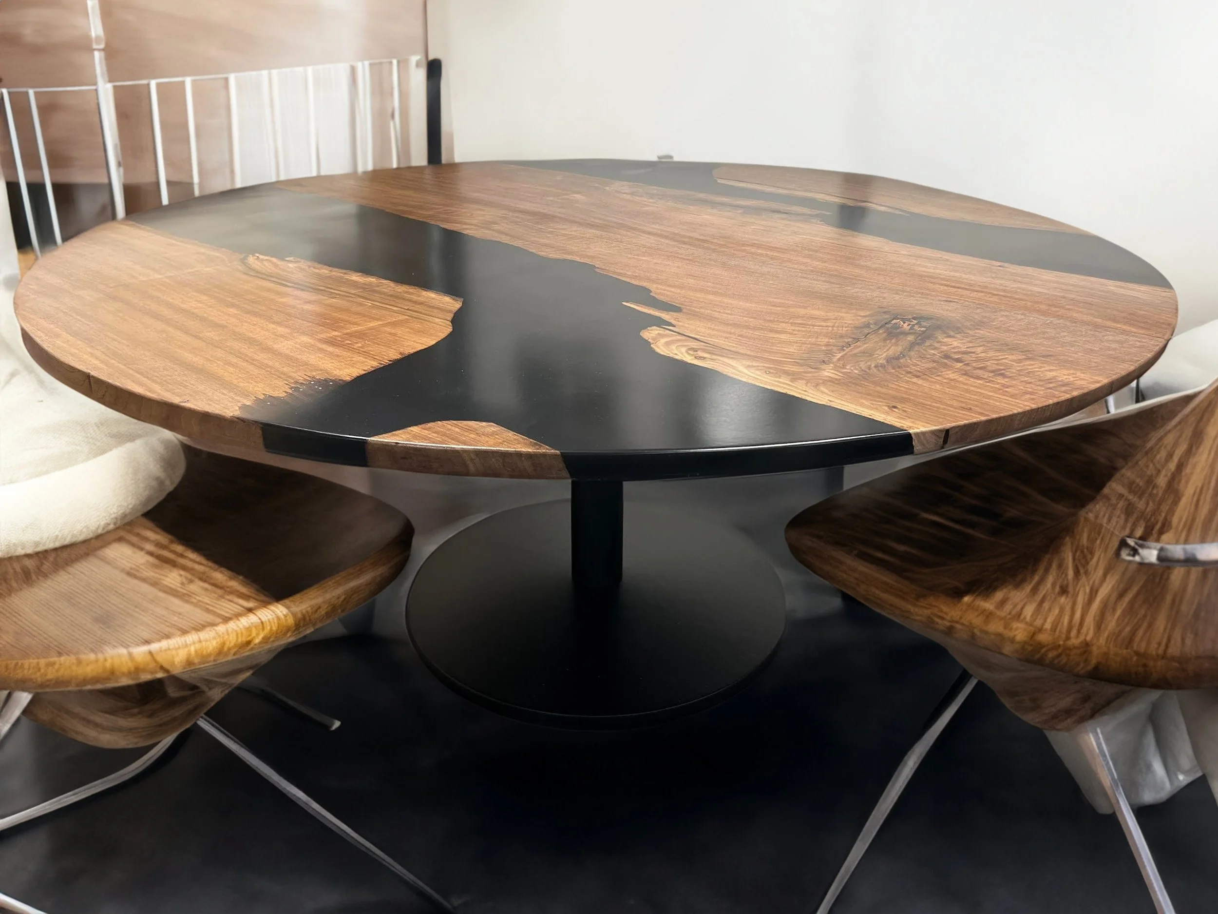 Handcrafted Black Walnut Circular Epoxy Resin Dining Table