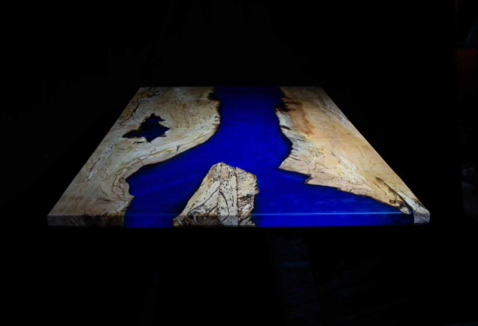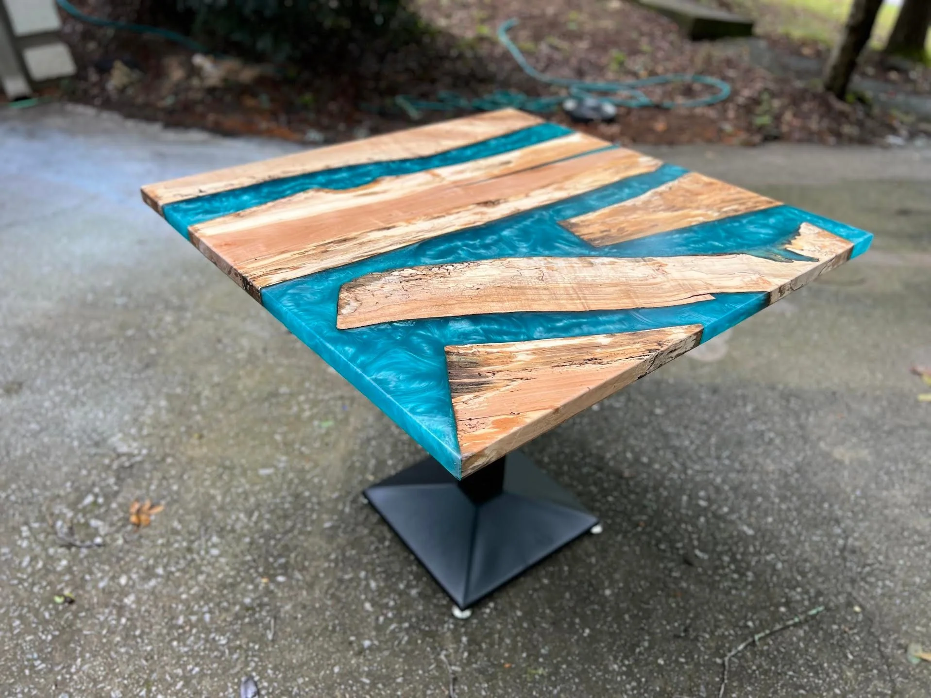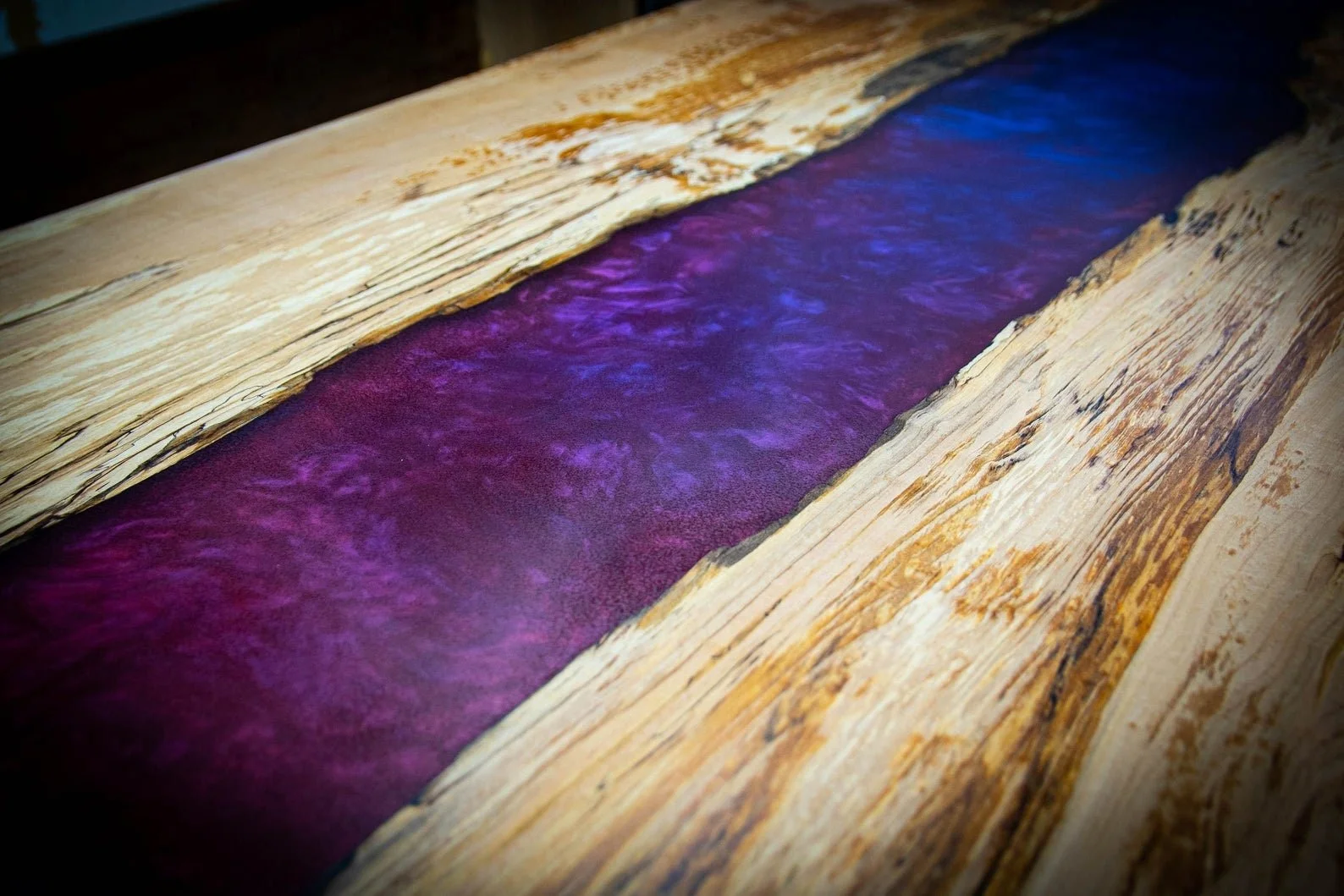 Handcrafted Epoxy Resin Spalted Maple River Dining Table