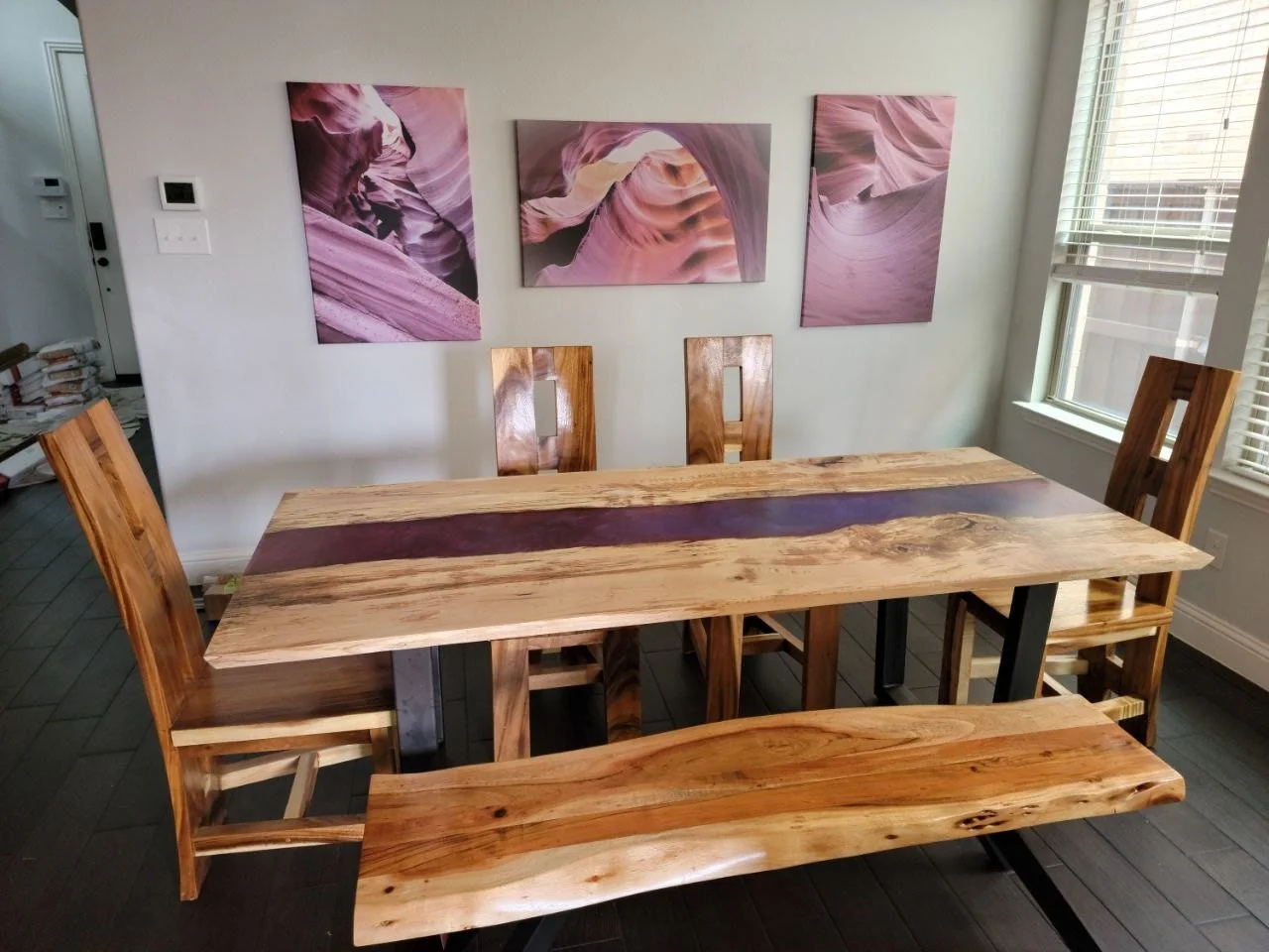 Guarantee your kitchen will be the toast of the town with one of our fully customizable epoxy resin river tables! Combining the utility of a table with the artistic flair of epoxy resin, our river tables will serve as a piece of functional art in your home for decades.