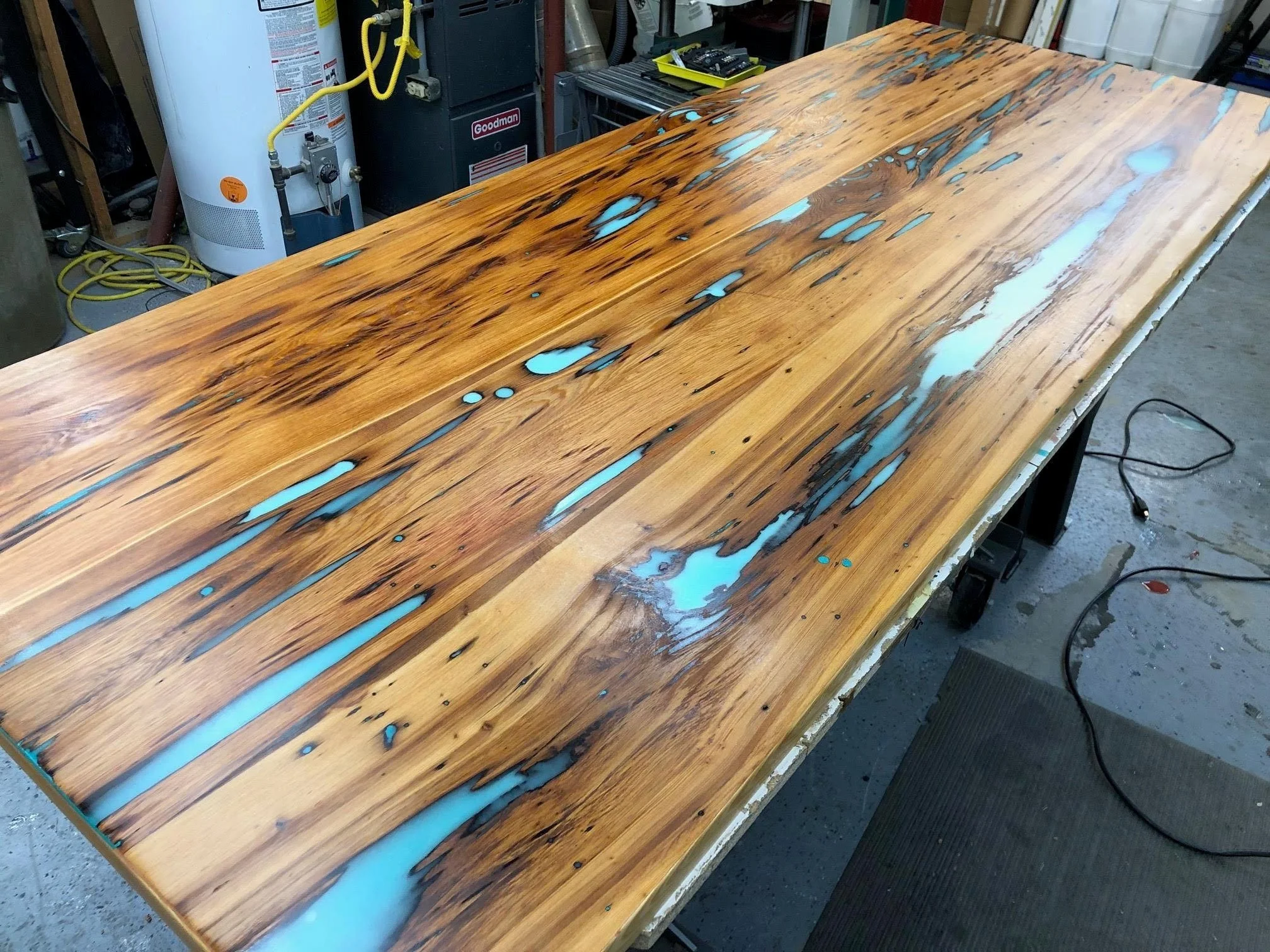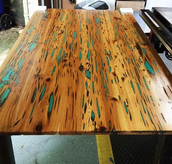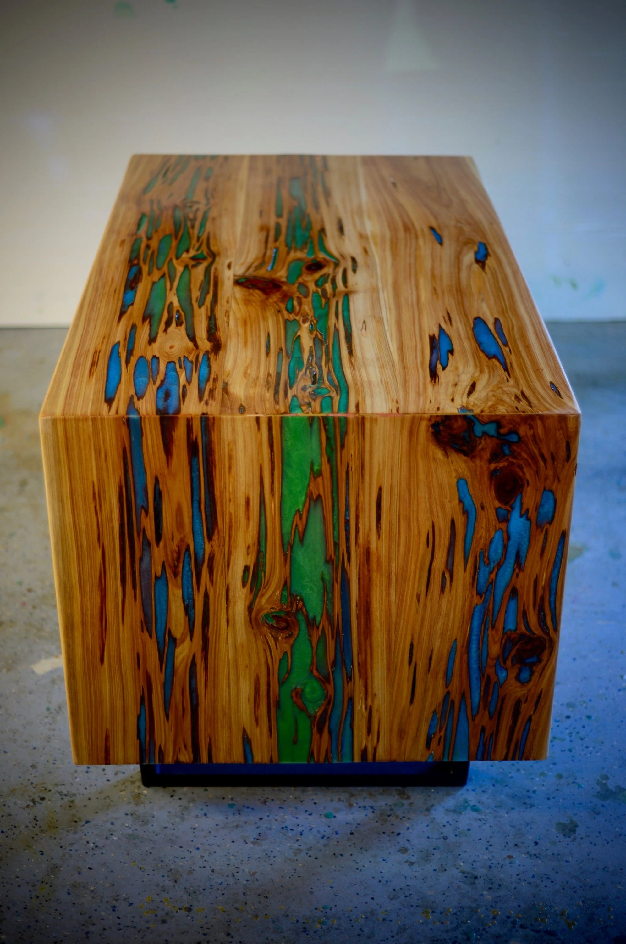 Handcrafted Glow in the Dark Epoxy Pecky Cypress Table