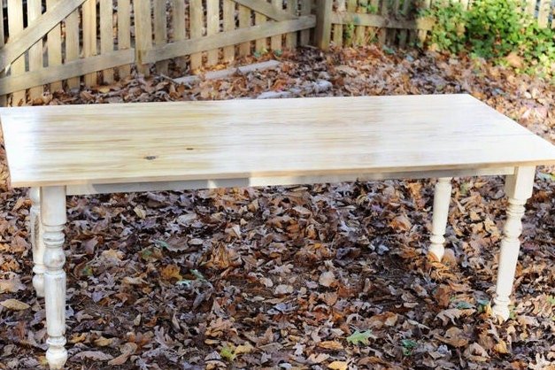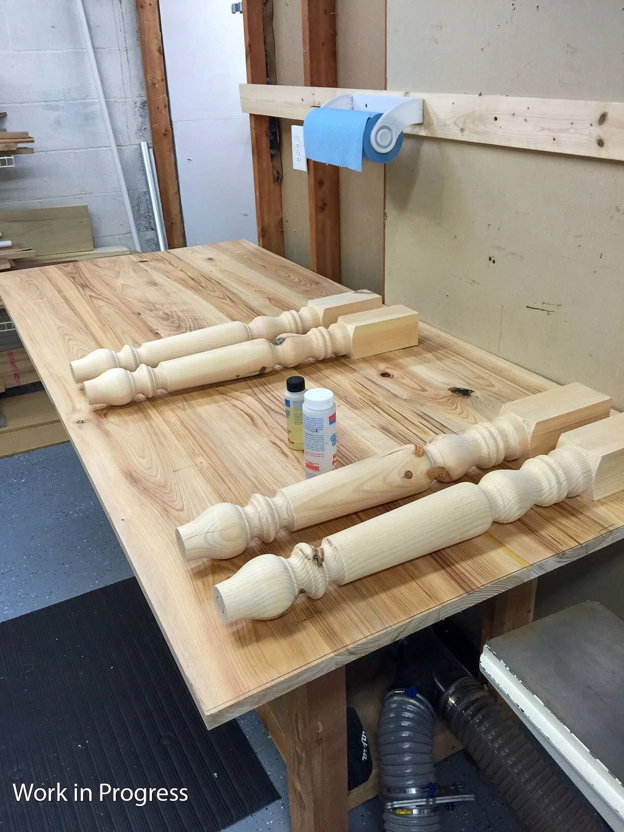 Our workshop offers this table with a traditional-turned farmhouse leg made from pine.