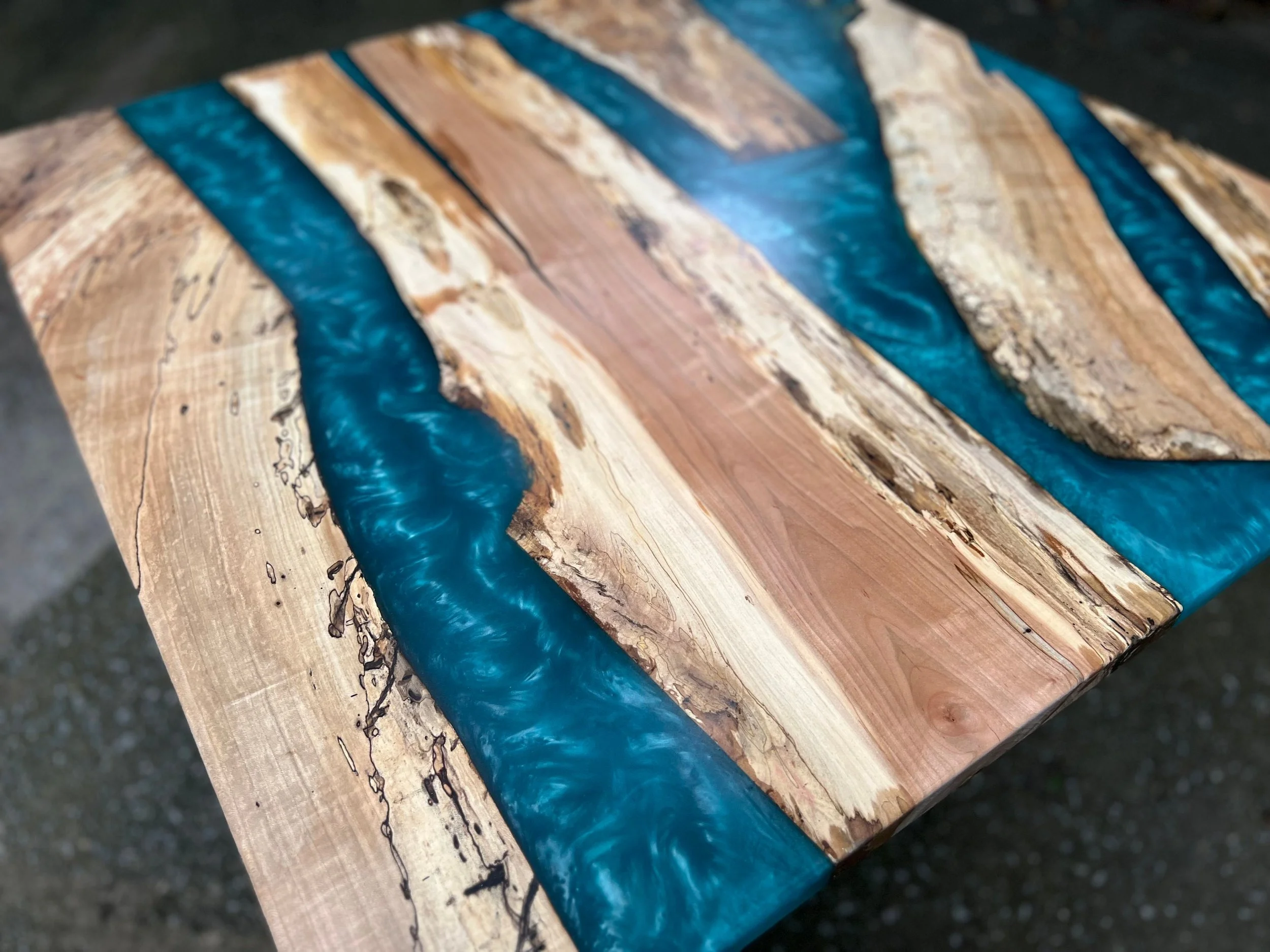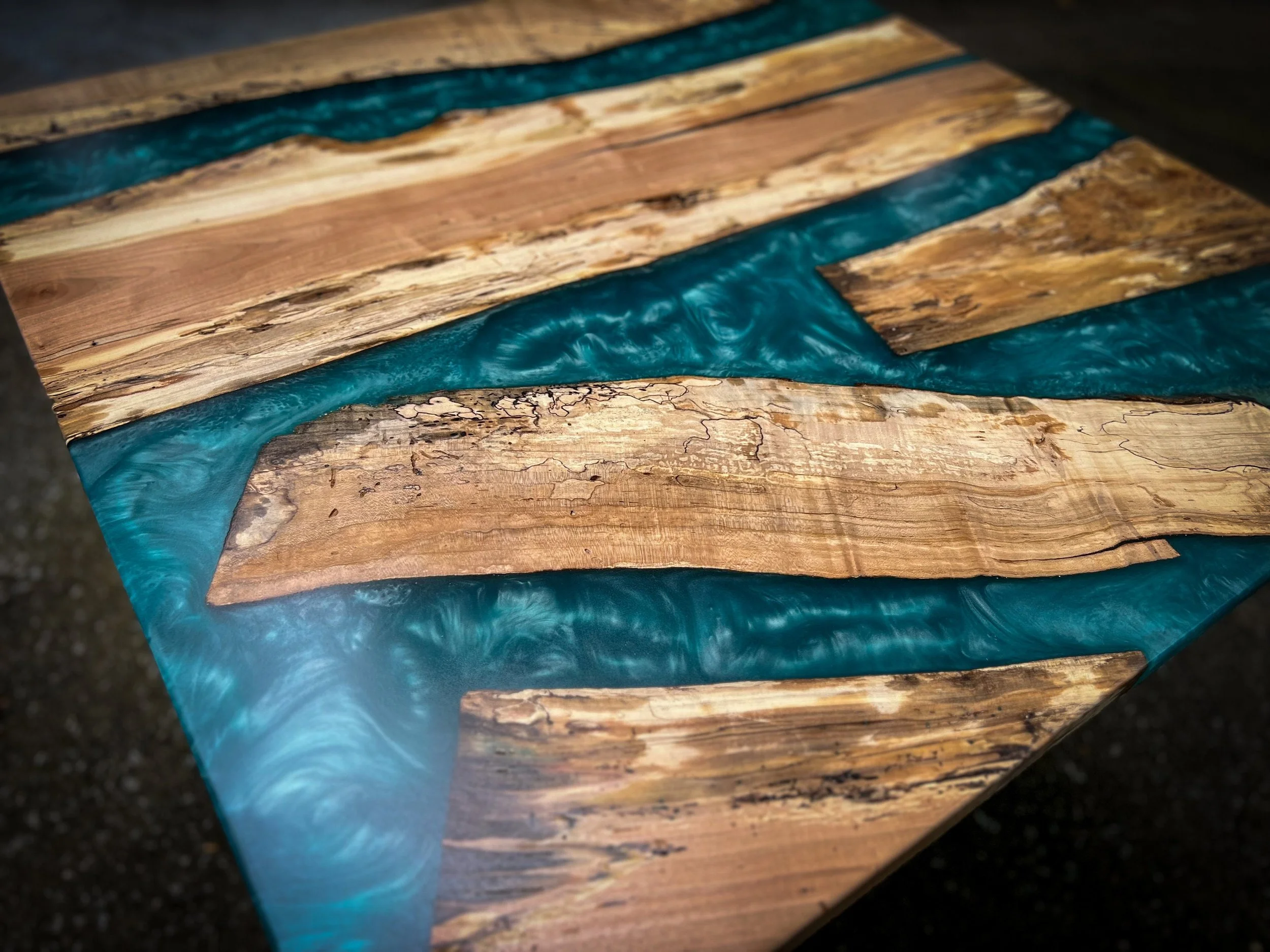 Crafted from the finest spalted maple, this table radiates natural beauty that's uniquely yours. We're not just selling furniture – we're offering you a chance to be a part of the creation process. Collaborating closely, we invite you to hand-select slabs and experiment with resin samples at no extra cost, so your table embodies your personality.